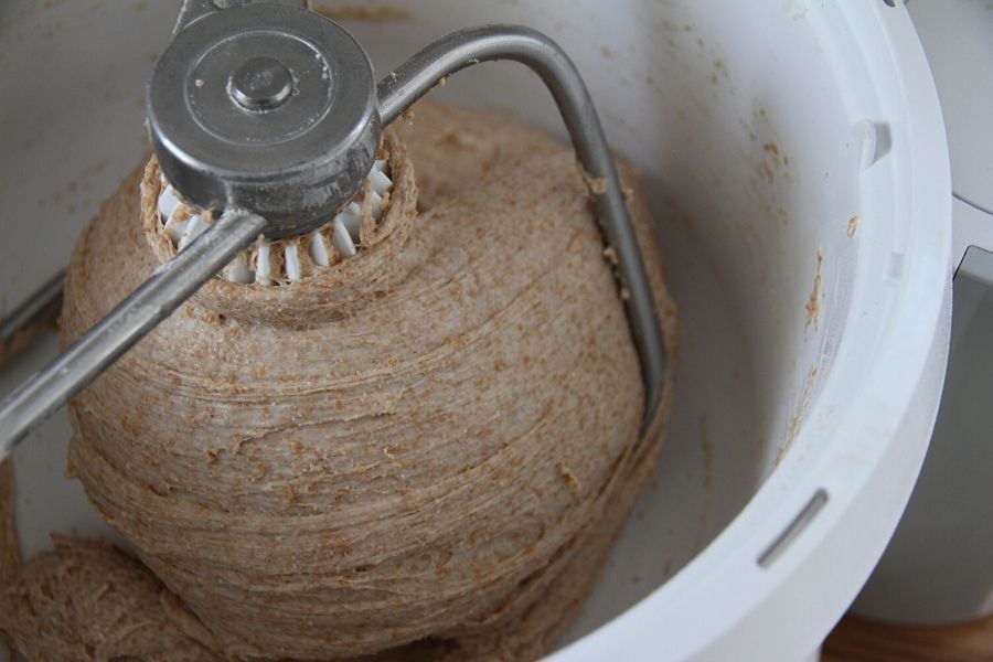 To create a stronger crumb, this recipe requires you to knead your bread sponge for 10 minutes. While you can do this by hand, an electric bread mixer does wonders! In my kitchen, I use the Bosch (see my resource page).