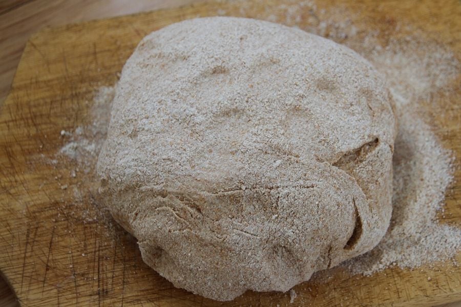 Turn the dough out onto a floured surface and work in the last 1 C of whole wheat flour.