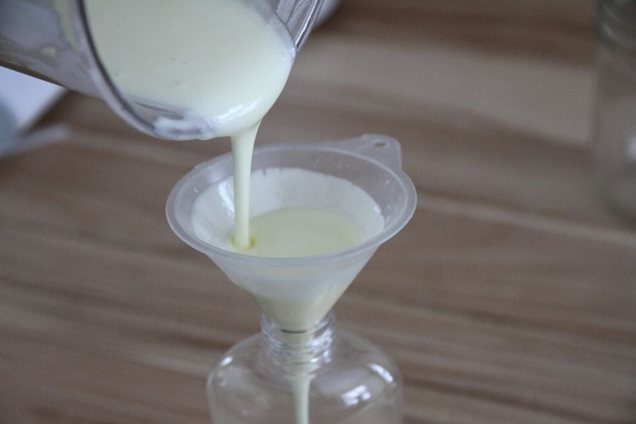- Using a small funnel, pour the warm lotion into a pump bottle.