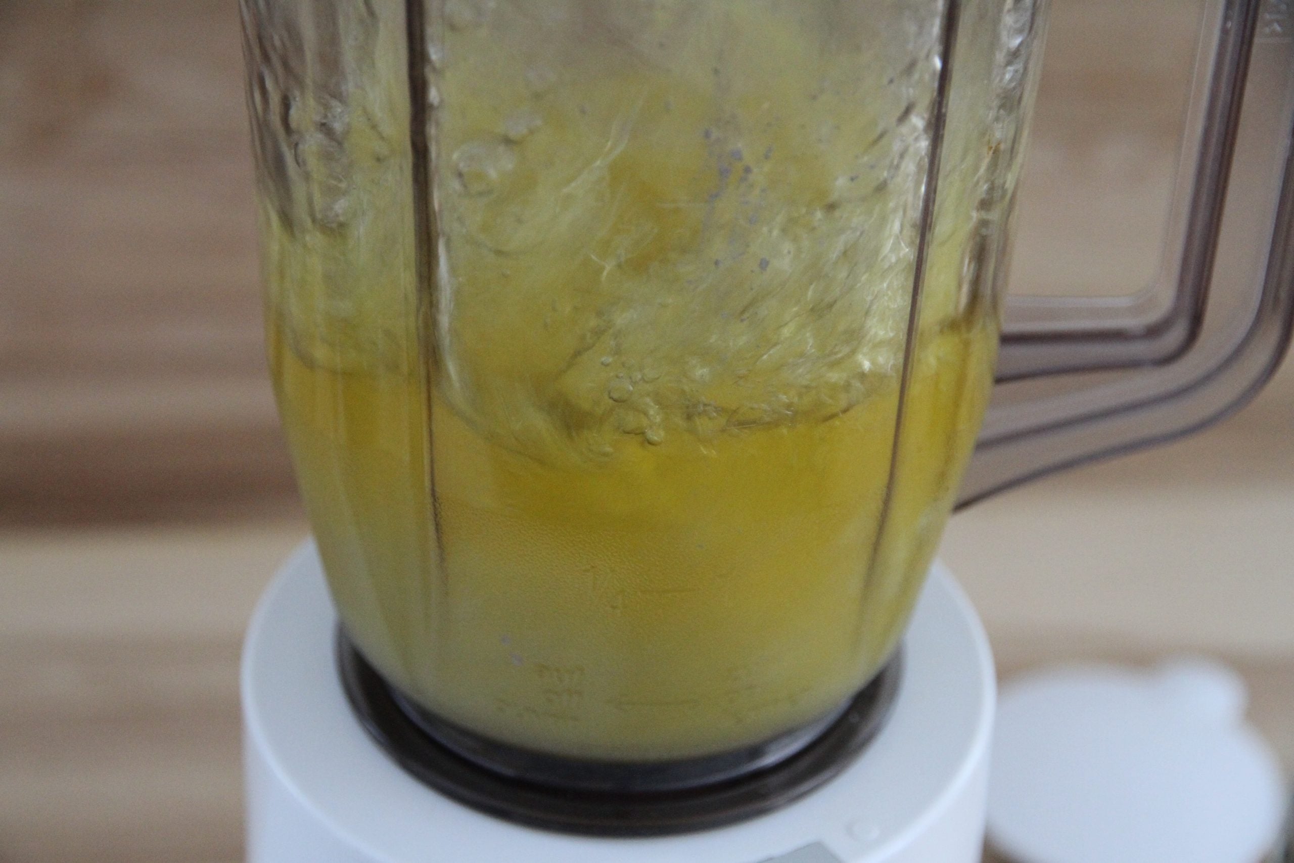 - When liquidized, pour the the warm goods into your kitchen blender.