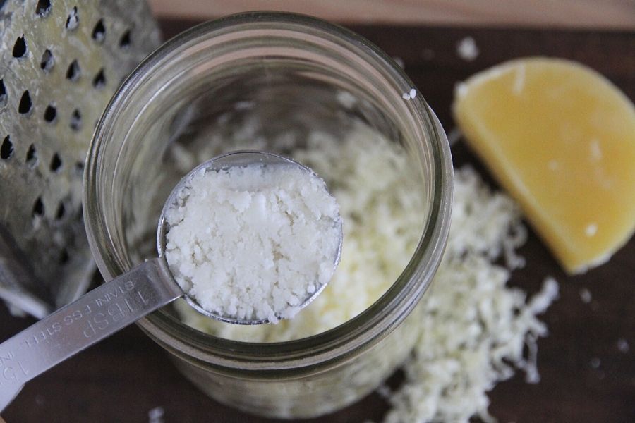 - 0.20 ounces (5.6 g) grated beeswax or pellets