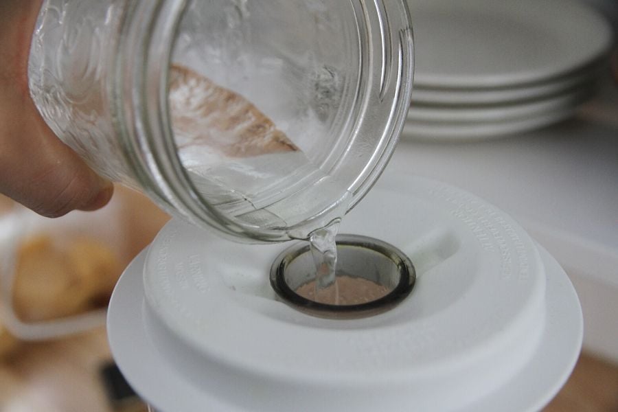 - Cover the top with a lid, then measure out your 1/4 C distilled water.