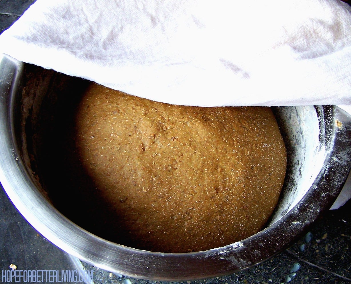 Grease a large bowl with coconut oil or lard. Plop your dough into the bowl and cover the top with a slightly dampened tea towel.
