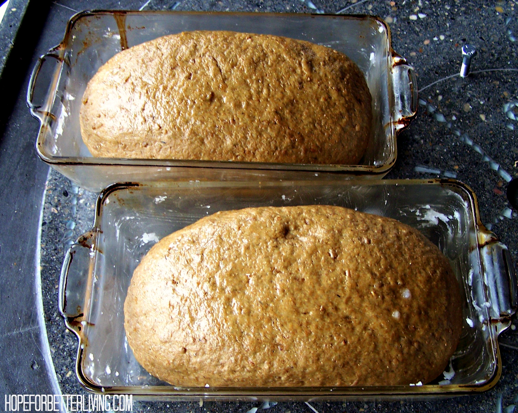 When the dough has risen enough to double in size, remove the cloth. Turn the oven to 375F, leaving loaves to rise in temperature with the oven.
