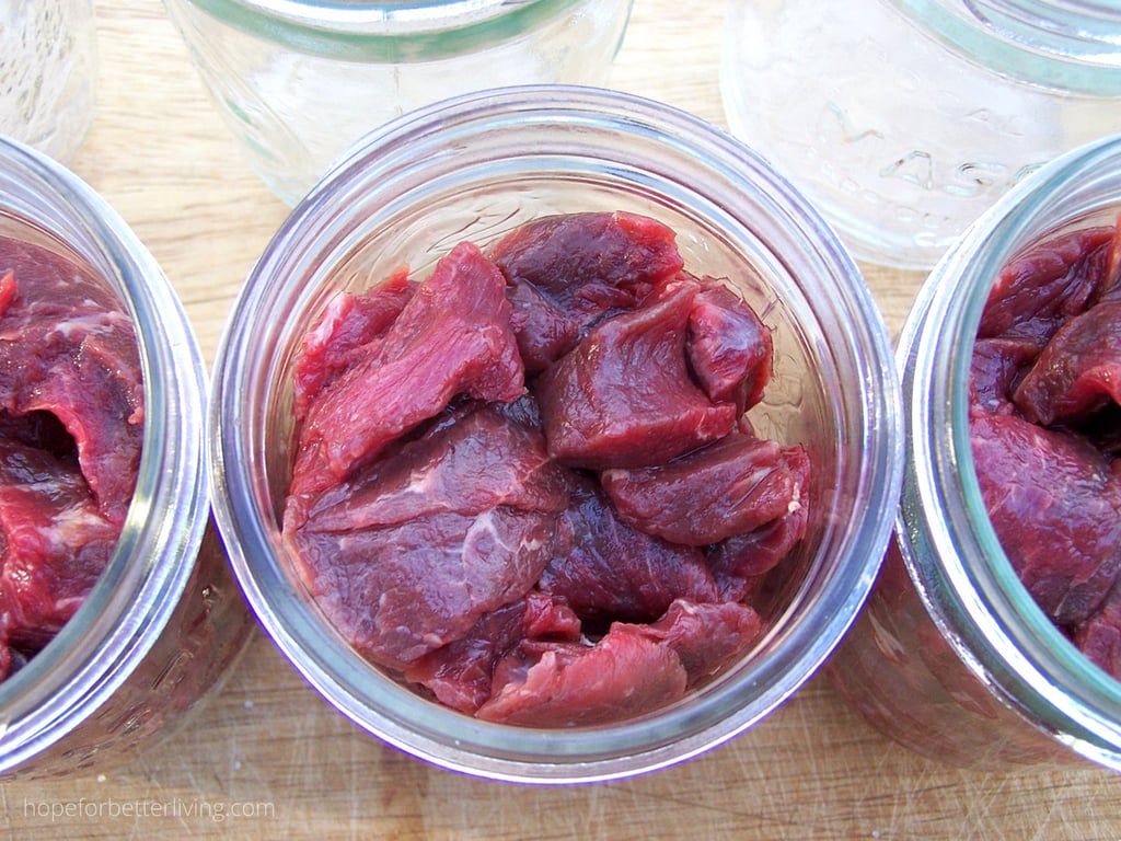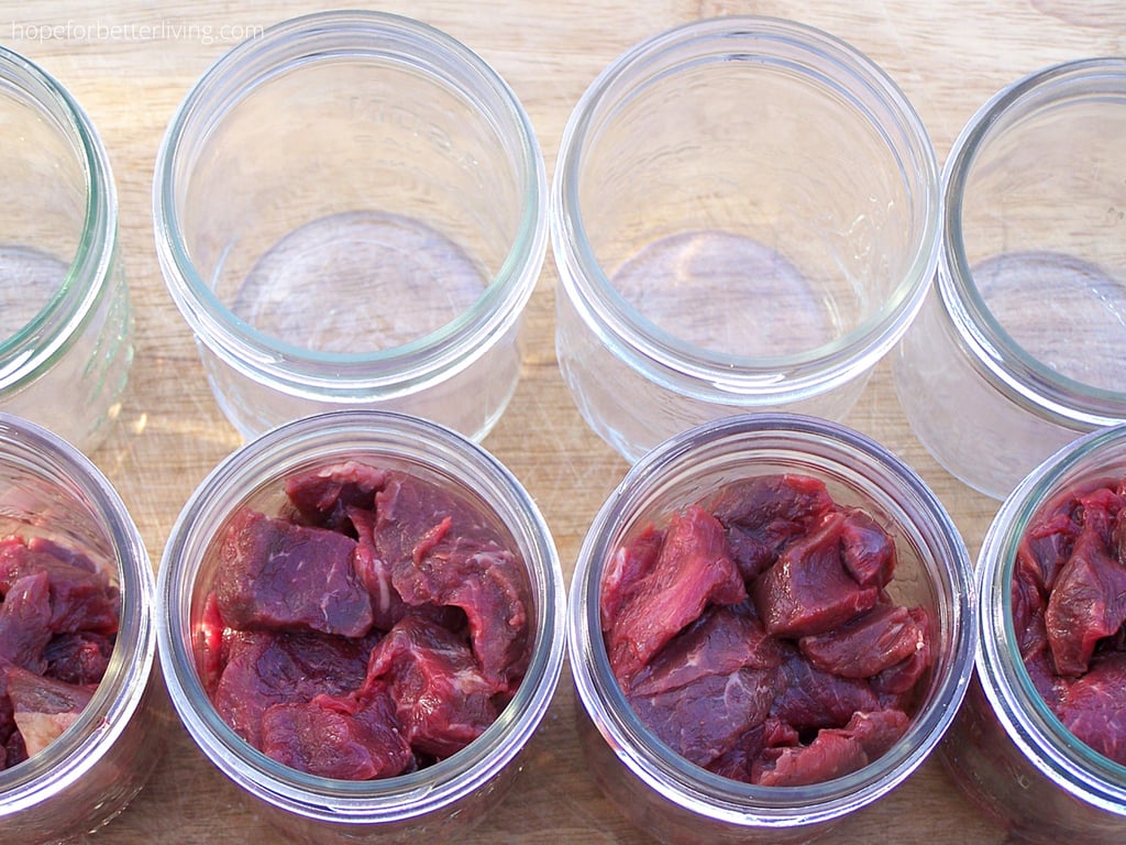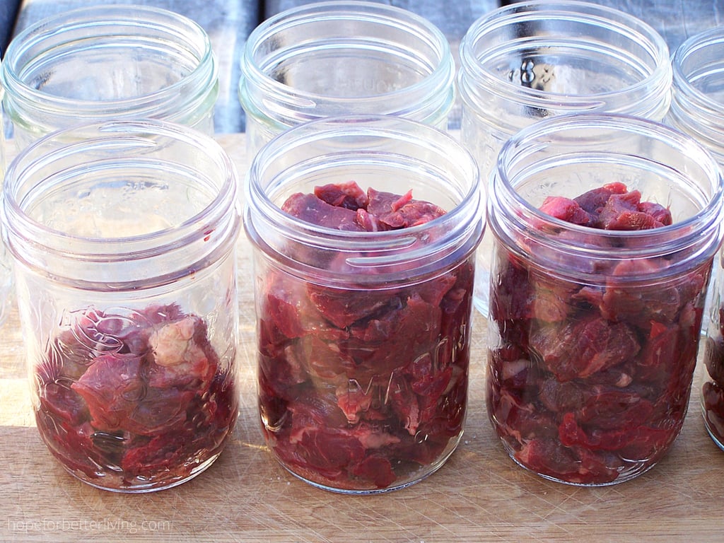 On average, expect about 1 lb of red meat to fill a 1 pint (500ml) jar. When canning in quarts, account for 2 lbs per jar. If you don't have a scale or are too lazy to use one, you can estimate. I usually do!