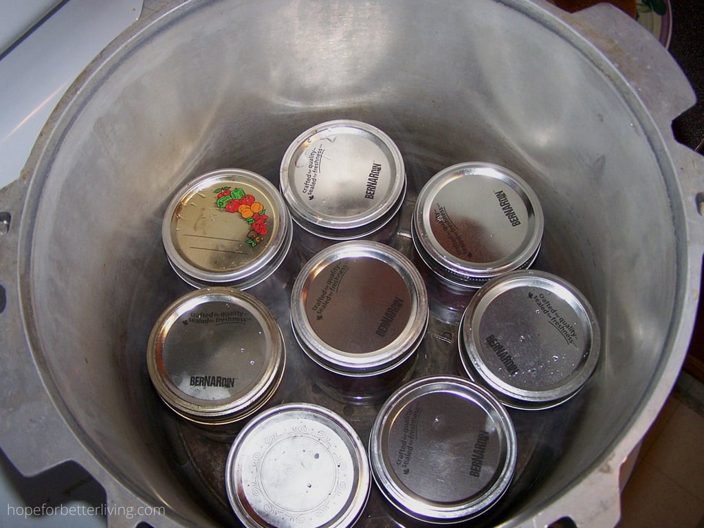 Once your jars have been safely processed, leave the pressure canner alone until the dial gauge falls to 0. Then and only then remove the lid. Using your nifty jar lifter, set the piping-hot jars to cool on a towel or rack.