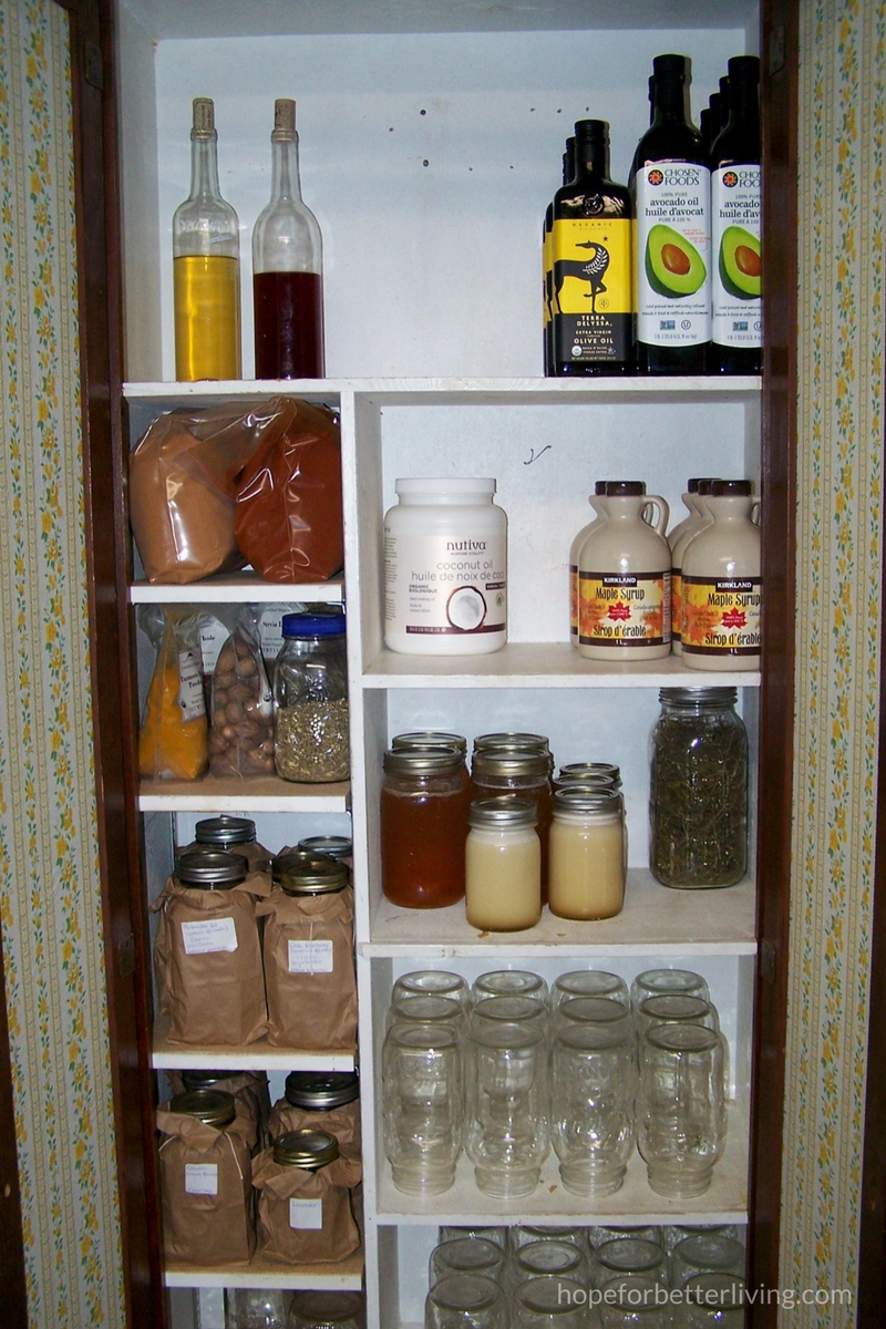 In a cupboard are jars of rendered fat, jugs of maple syrup, bottles of oil and homemade vinegar, herbs and spices of all kind. Our yearly supply rests in this place.