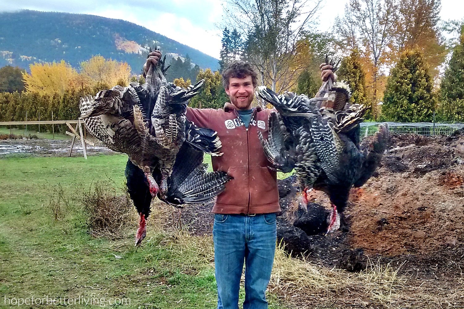 Heritage turkeys can replace meat chickens on the farm (please read are heritage turkeys or meat chickens better?). Not only are they capable of 100% free-ranging, but when butchered at 18-20 weeks of age, hens dress out at 4-8 lbs while toms reach 8-12 lbs.