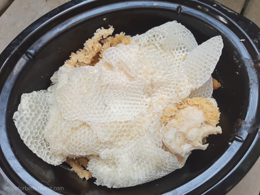 Place the honeycomb in a crock pot. We use a 7 quart and have a second insert specifically designated for this purpose.