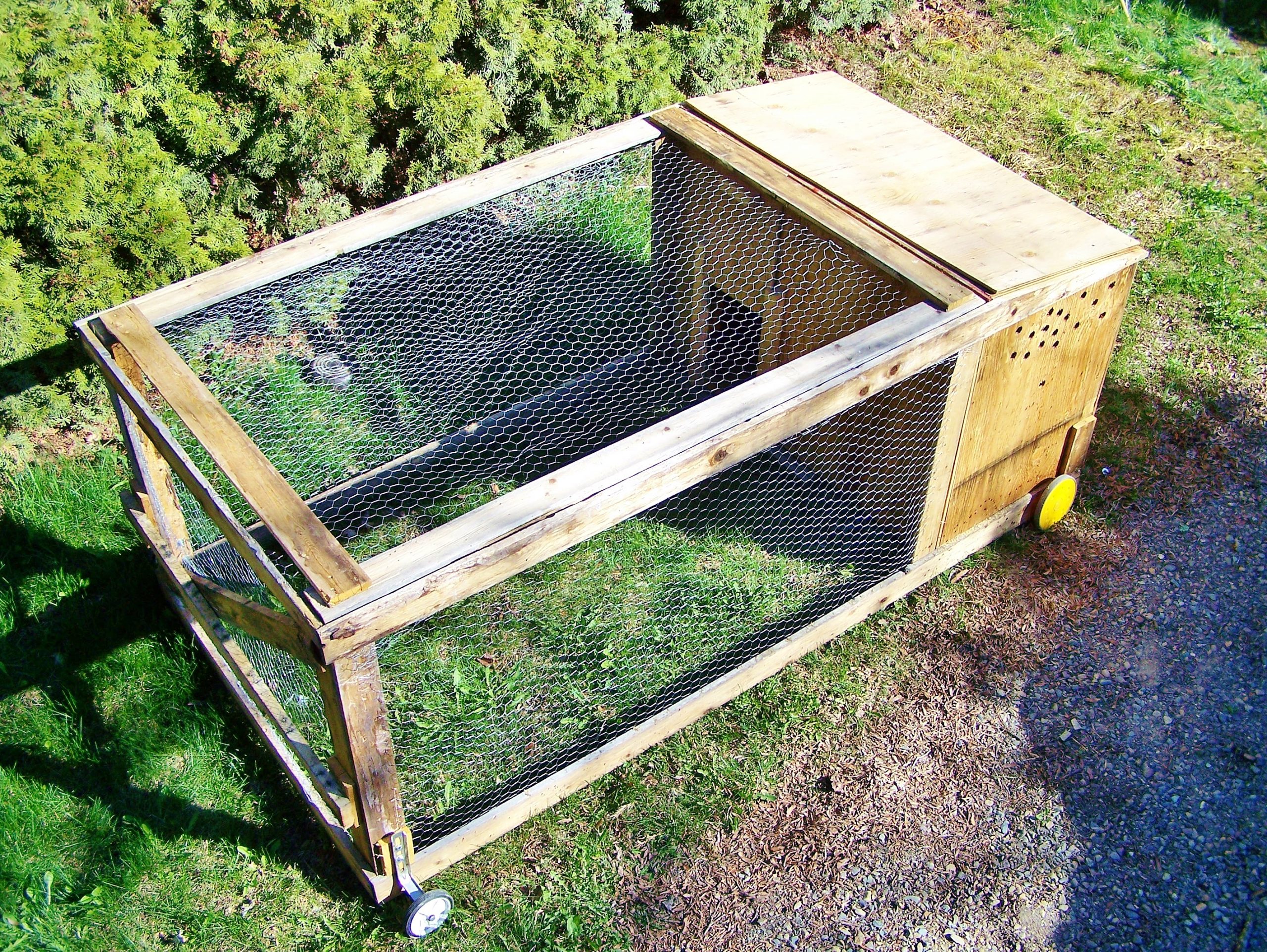 One of the reasons we've been able to successfully raise these two bird types together is because of our outdoor brooder. My man specifically designed and built this small moveable 'bird tractor' for our featherless babies.