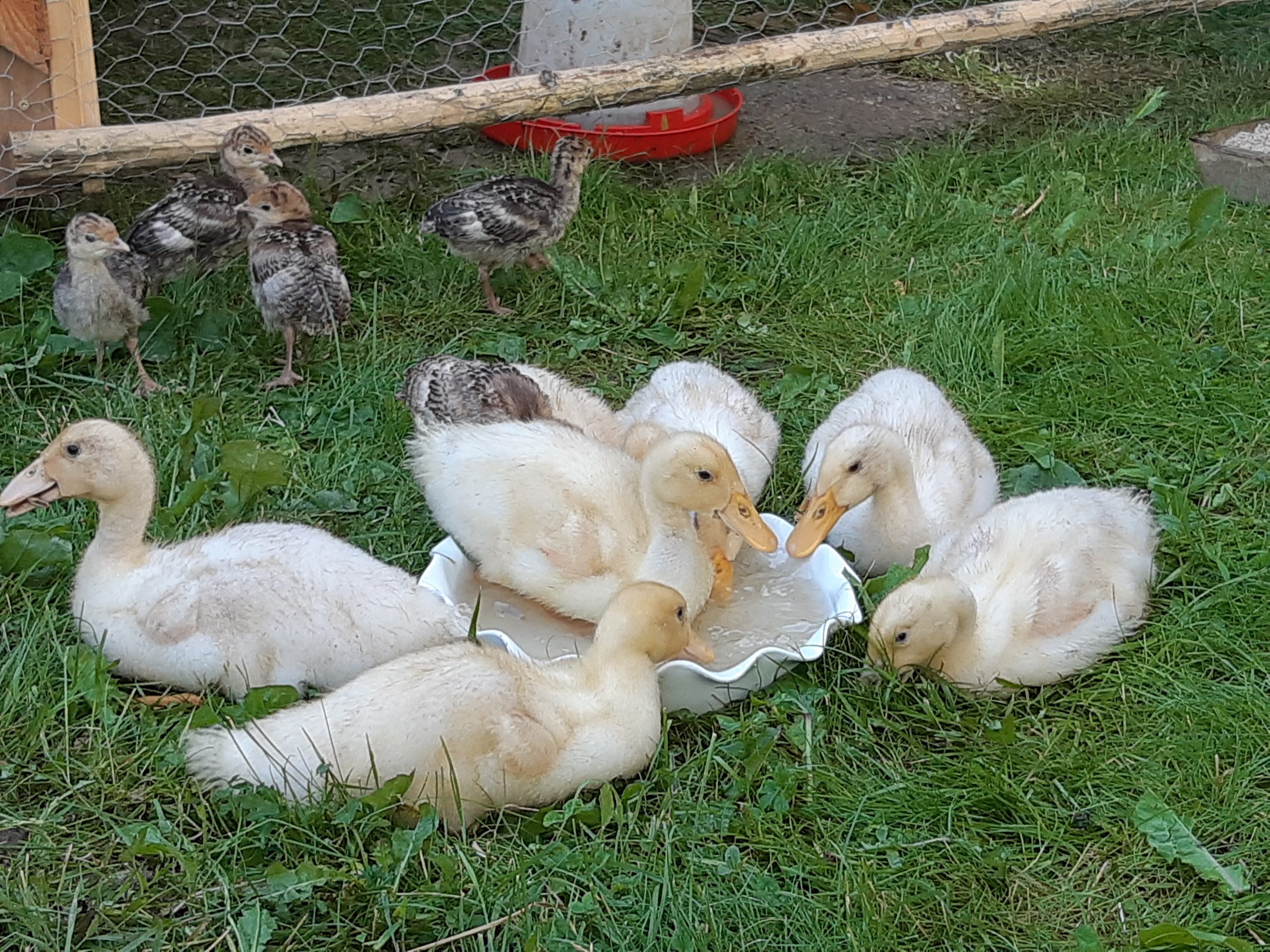 I've raised birds for over 50 years and quite agree that ducks are the way to go...have just started adding heritage turkey poults,but they are very slow to catch on to eating,my ducklings gobble everything in sight...Any advice please? Thank you! Sue