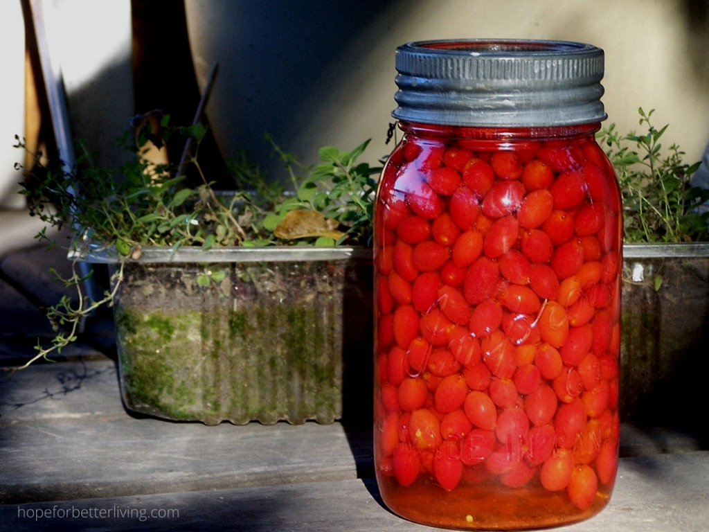 Directions: place clean rose hips in a clean quart jar, leaving 2-3 inches of head space. Rose hips will expand as your vinegar penetrates them!