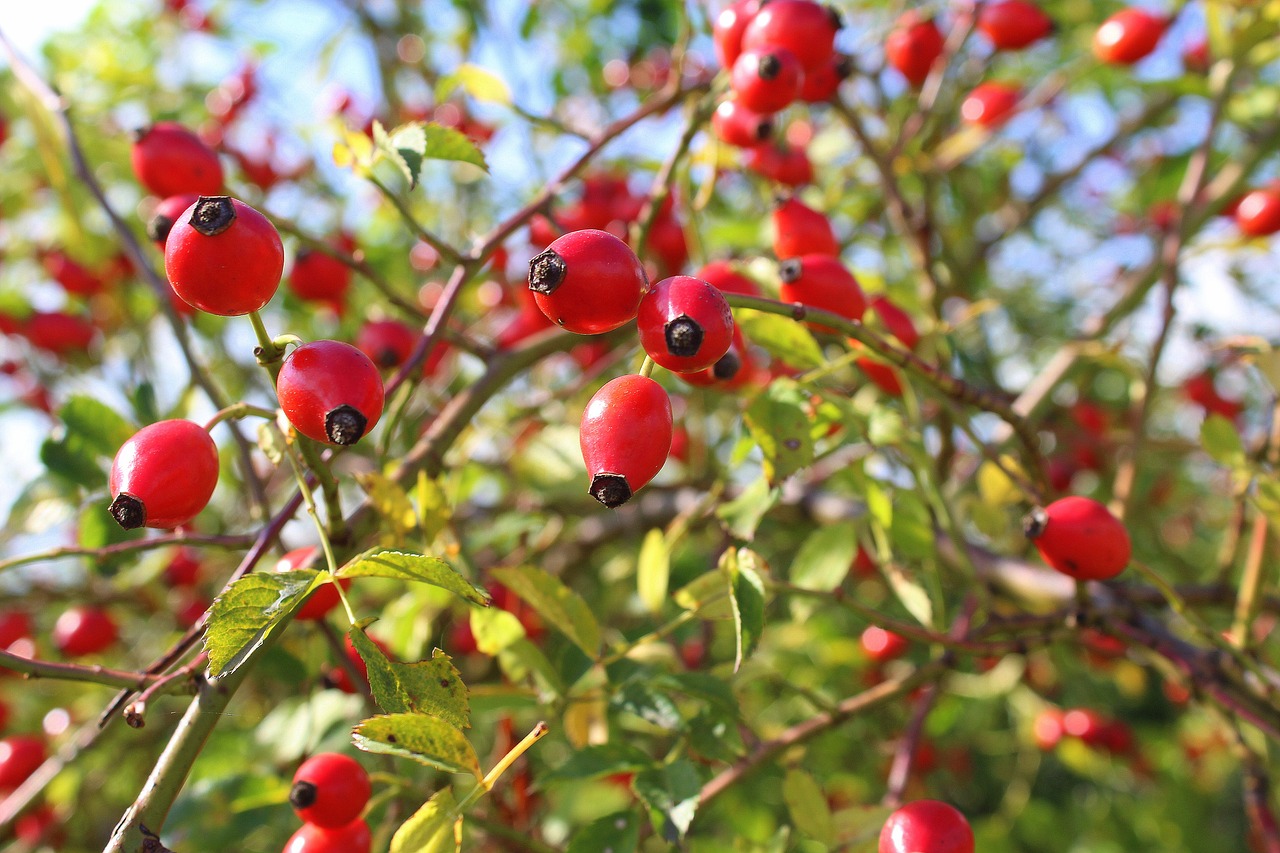 Because rose bushes have thorns, you may wish to wear gloves and long sleeves. Hips can be plucked with the stem intact. I like collecting the little red gems into a basket!