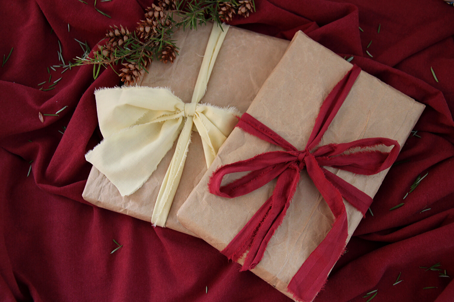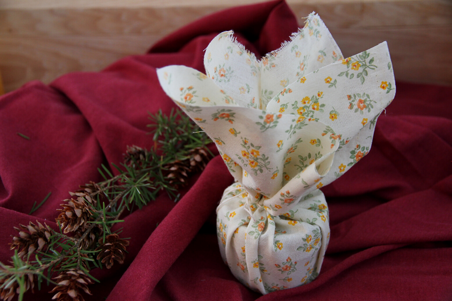 Are you a seamstress or crafter? Don't be afraid to use extra cloth as gift wrap! You can keep it simple, gathering and tying the cloth around your gift, or (like burlap) you can create a cloth bag for that special item.
