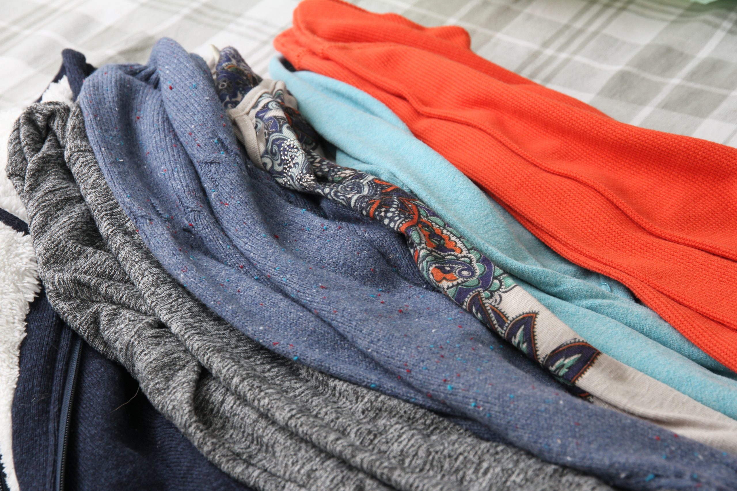 My clothes! No, not the ones overflowing in the laundry basket, or the dirty pair I had dropped on the floor the day before. I stared down at the clothes I had on, my many-times stained sweater and the old black sweats I snagged out of a “giveaway” pile during college days.